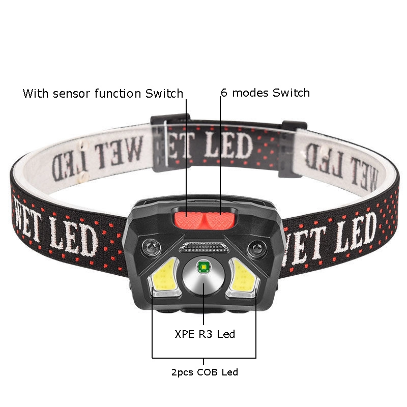 Rechargeable Sensor Head Lamp With Red Light
